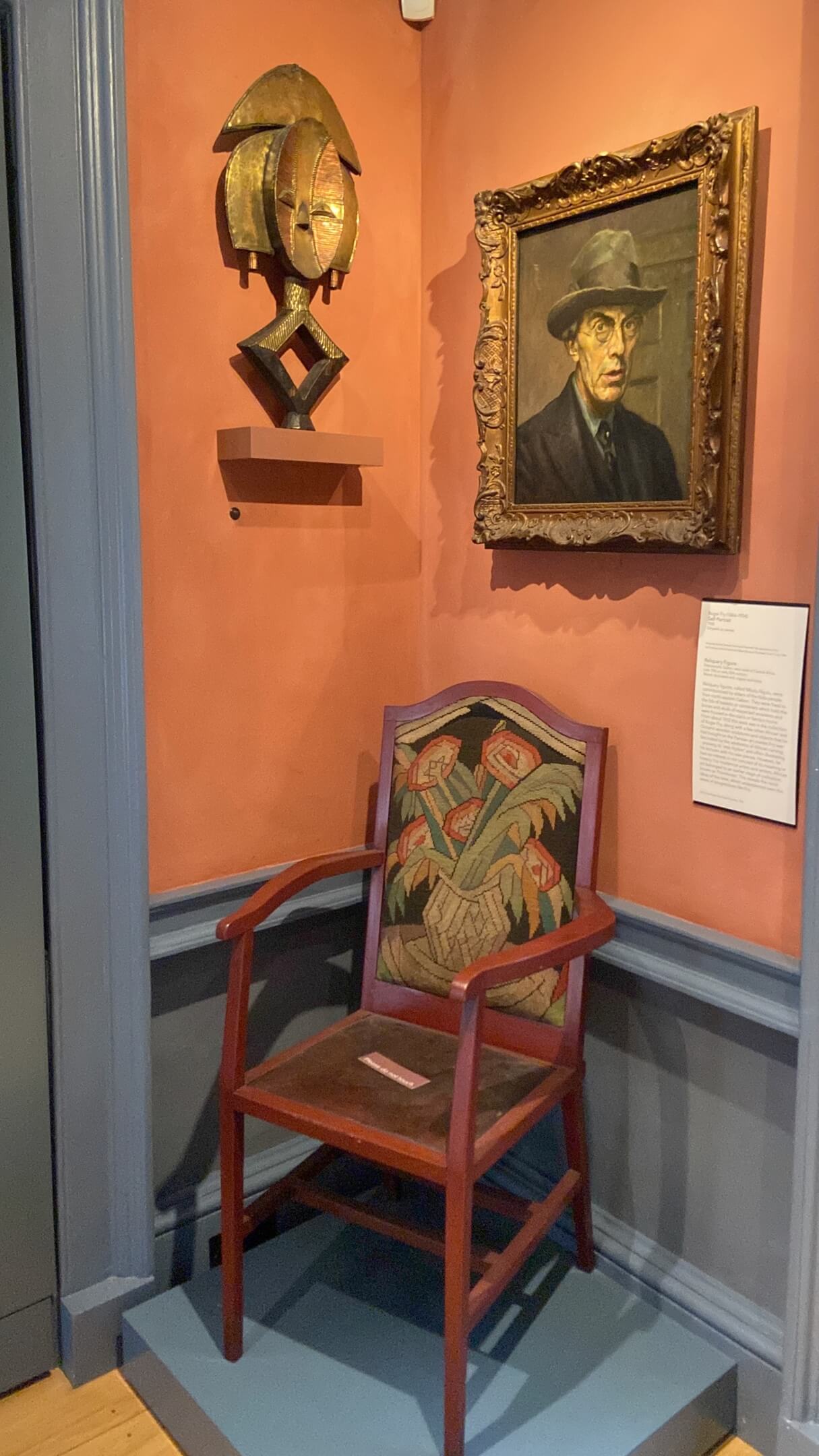 로저프라이가 페도라 모자를 쓰고 정장을 입은 모습을 그린 1928년 자화상은 예술가이자 지식인이었던 그의 품위를 담고 있다. 그 앞의 의자는 바네사 벨과 던컨 그랜트가 디자인한 것으로, 이국적인 꽃과 식물의 모티프가 수놓아져 있다.