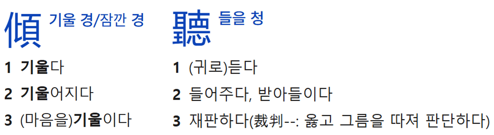 경청의 한자어 뜻 ⓒ 네이버 한자 사전