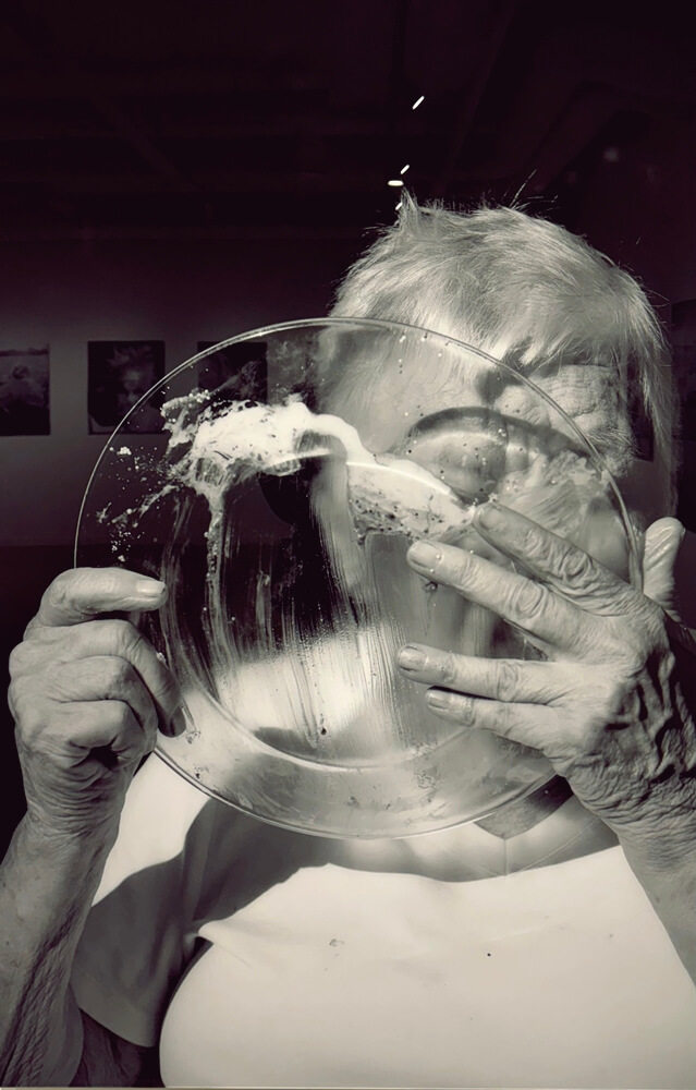 작가의 어머니는 작품이 만들어지기 5년 전 혈관성 치매를 진단받았습니다. 관계의 매듭들이 풀어지고, 기억의 조각들이 시간의 그물 사이로 꼬리를 감춥니다. 당신의 행복과 나의 불행을 반드시 저울의 양편에 둘 필요는 없습니다. 조류관찰자이자 새를 조각하던 예술가였던 어머니에게서 작가는 새처럼 자유로운 빛을 마주합니다. 가볍고 밝은 기운의 빛은 사진으로 기록되어 받아들여집니다. 유리그릇의 바닥까지 혀로 핥고 있는 어머니의 모습은 그녀가 본 적 없는 어머니의 어릴 적 모습은 아니었을까요? 우리는 서로의 잊혀진 기억을 뫼비우스 띠 같은 시간 속에서 사이좋게 나눠 갖는 사람들이 아닐까요?