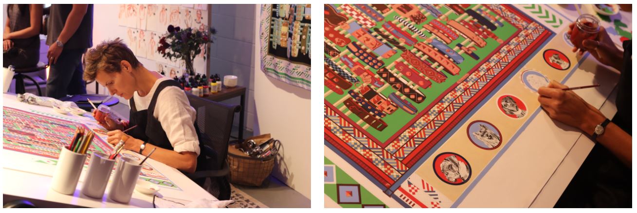 안으로 들어가자 더욱 많은 볼거리들이 눈을 사로잡았다. 스카프 디자인을 그리는 프랑스 아티스트, 오렌지색 펜으로 캐리커쳐를 그려주는 분, 레드톤의 LED 작업들과 스카프가 걸린 벽들, 그리고 화보같은 GIF 파일을 만들어주는 포토존까지. 고급 브랜드임에도 까레 클럽의 여유로운 분위기는 정말이지 경쾌했다.