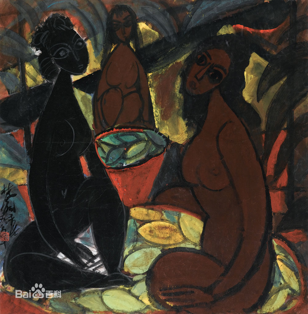 화가는 또한 중국 민간예술에서 많은부분 예술적 영감을 받았다. 도자기 회화에 나타난 필선의 자유로움과 곡선의 ‘미’를 그의 여성인물의 윤곽선에 반영했다. 단순하면서도 기하학적인 종이접기공예와 그림자극 인형의 형태는 그의 여성인물의 전형적인 형상이 되었다. 더불어 칠기공예, 한나라시대의 화상전등도 그에게 많은 예술적 영향을 끼쳤다. 화가는 중국의 민간전통예술과 서양현대회화의 형태미를 적절하게 조합하고 섞어 독창적인 여성인물을 탄생시켰다.