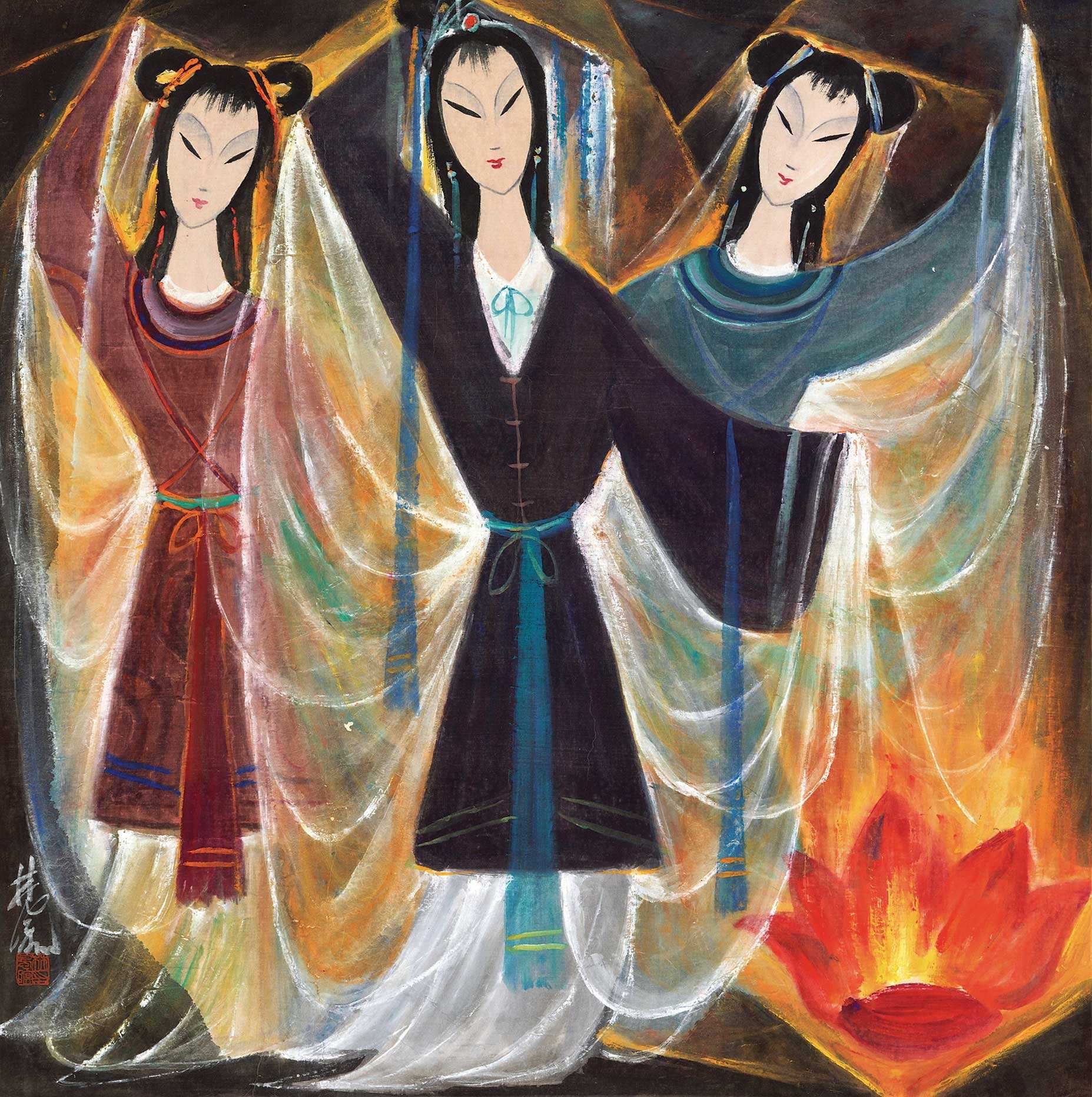 이 그림은 화가가 40년대 이후 상해에 머물며 전통희극으로부터 영감을 받아 제작한 작품중 하나이다. <보련등>이라는 이 작품은 중국 전설이야기를 그린 것이다. 보련등은 옥황상제의 셋째딸 삼성모가 천계의 보물인 ‘보련등’을 훔쳐 인간남자와 사랑의 도피를 하는 내용이다. 그녀는 인간남편 사이에서 침향이라는 아들을 낳고 행복하게 살아간다. 그러던 어느날 오빠 이랑진군에게 발각되고, 보련등을 빼앗기게 된다. 화산에 봉인되고 만다. 사랑하는 아들과 생이별 또한 하게 된다.침향은 어머니를 구하기 위한 일념으로 긴긴 시간 스승 손오공의 고된 수련을 견뎌내고 마침내 어머니를 구해 재회를 하게된다는 중국 전설이야기이다. 이 작품은 화가가 어머니를 그리워하는 마음이 적극 반영하여 제작한것으로 여겨진다. 보련등이라는 전설의 이야기를 통해서라도 간접적으로 어머니를 그리워하는 마음을 달래려 한것이 아닐까?