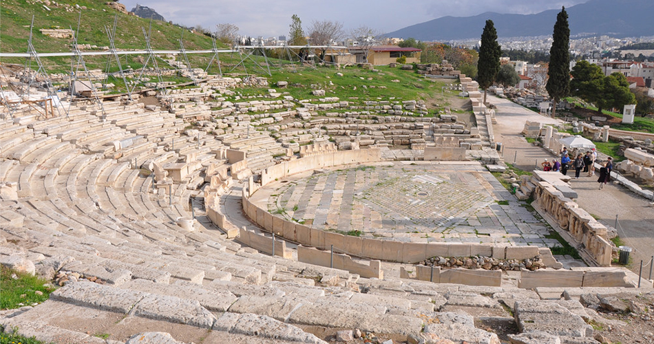 ▲ 6세기 때 지어진 고대 아테네의 디오니소스 극장 유적지. 이 극장을 중심으로 매년 디오니소스 축제가 펼쳐졌다.
