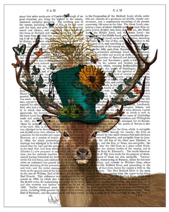 Fab Funky라는 예명을 쓰는 영국의 interior art작가입니다. 초기에는 200년 이상된 앤틱 백과사전을 분해해서 그중에 상태가 깨끗한 페이지 위에 자신이 작업한 이미지를 판화 형태로 만들어 내곤 했습니다. 그래서 판화이지만 같은 이미지를 다른 배경위에 작업하게 됨으로써 모든 작품이 동일할 수 없는 (같은 백과사전을 사용하지 않아서 모든 페이지는 틀릴 수밖에 없었으니까요) 유니크함이 있었습니다.