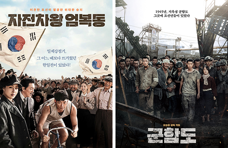 ▲ 일제강점기를 다루고 있는 영화 <자전차왕 엄복동> ⓒ(주)셀트리온엔터테인먼트, 군함도 ⓒ(주)외유내강, CJ 엔터테인먼트