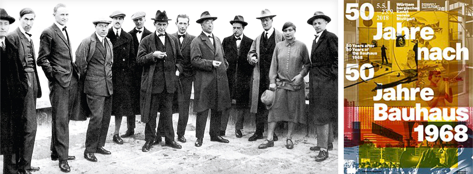 ▲ 바우하우스의 교수들. 가운데가 설립자 발터 그로피우스, 바우하우스 50주년 기념 전시 포스터, 1968년