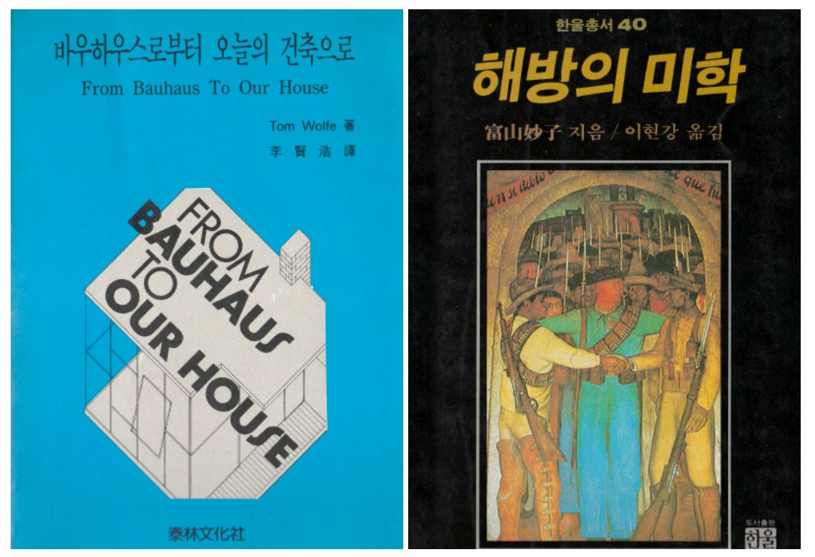 ▲ 번역서 《바우하우스로부터 오늘의 건축으로》, 톰 울프, 이현호 옮김, 태림문화사, 1990, 《해방의 미학》, 도미야마 다에코, 이현강 옮김, 한울, 1985.