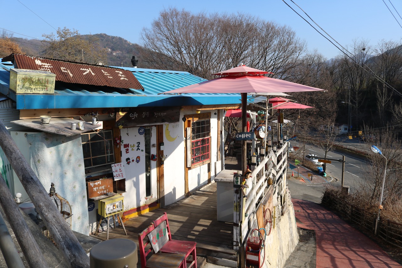 허름한 달동네의 판잣집이 빈티지 카페로 새 삶을 살고 있다.