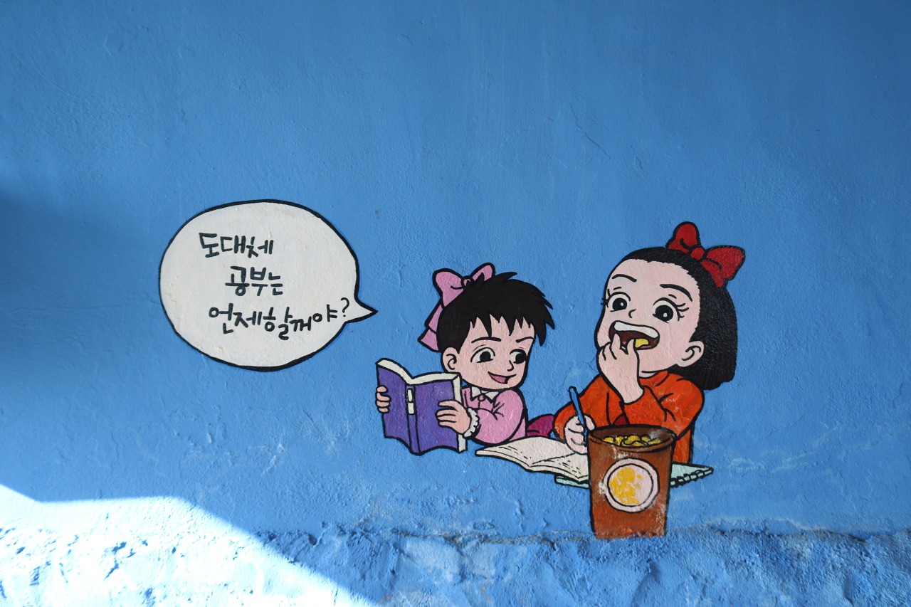 "도대체 공부는 언제 할 거야?" 영심이의 동생은 벽화 속에서 조차 얄밉다.