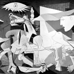 <게르니카>에는 스페인 내전 중 일어난 하나의 끔찍한 사건을 다루고 있다. 바로 민간인 학살이다.