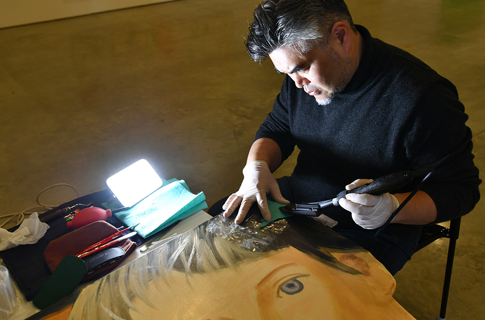 알렉스 카츠 전시 작품 복원작업 중인 모습 ⓒ김겸미술품보존연구소