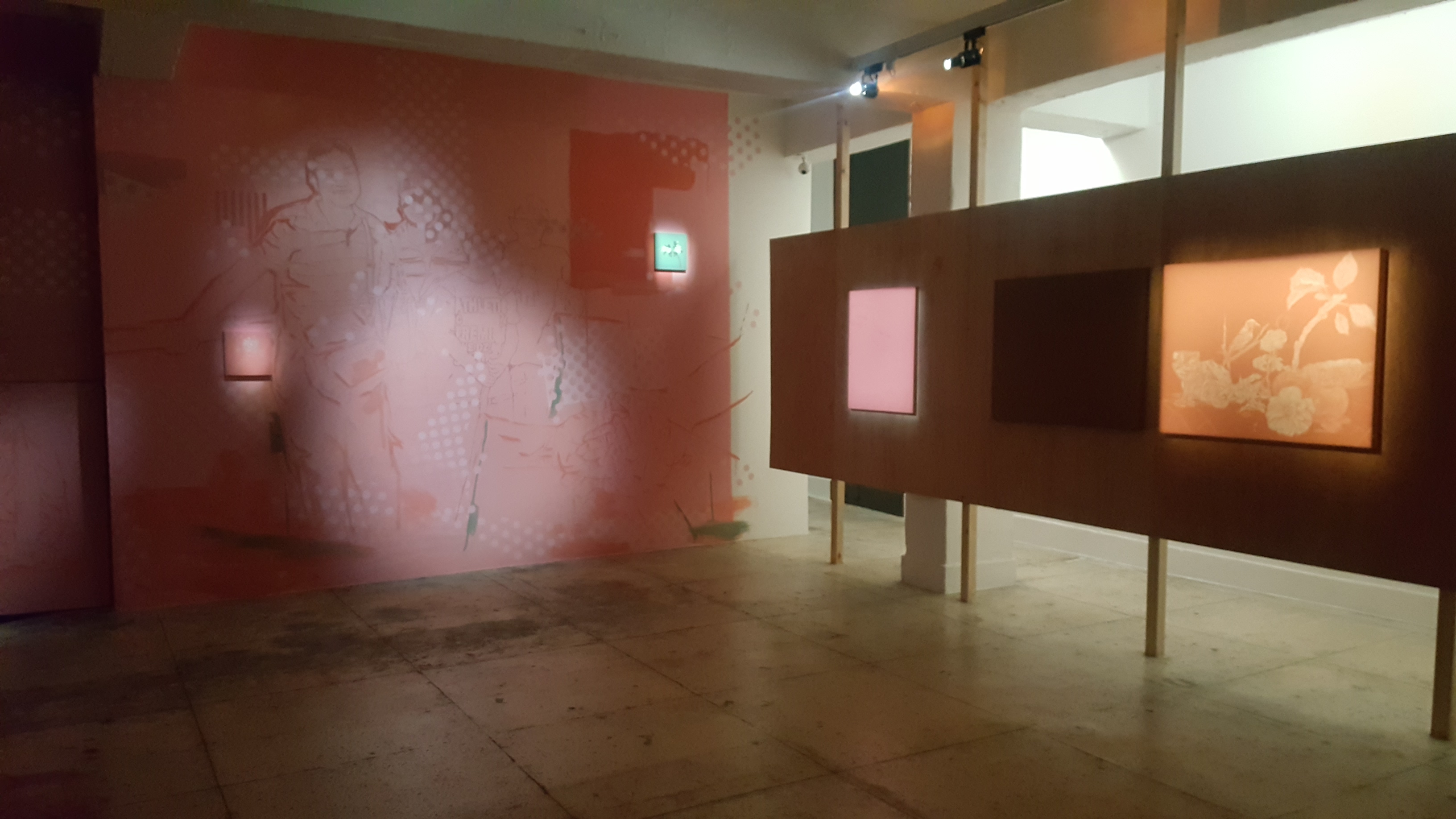 SO.S(Sarubia Outreach & Support)는 사루비아다방이 2015년부터 시도해온 중장기 작가지원 프로그램이다. 프로그램은 시대적 흐름과 속도를 달리하여 관심의 대상에서 멀어졌거나, 제도권 밖에서 창작의 위기 또는 작업 자체의 매너리즘을 고민하는 작가들을 위한 소통의 창구를 마련하는 것을 목표로 하는 것이다. 박상희는 오랫동안 한국 정서의 한 단면인 역동적이고 화려한 빛, 그 이면의 잔영을 주 재료인 시트지 커팅과 그리기의 방식을 혼용하여 평면에 담아왔다. 작가는 작업에 사용되는 시트지에 칼로 음각을 주어 시각적 효과를 강조하고, 평면 부조에서 조각적 입체감을 드러낸다. 이번 전시에서는 오랜 기간 시각적 밀도를 구축해온 표현방식을 벗어나, 평면, 입체, 공간, 색 등 보다 다양한 조형 요소를 한 공간에서 재구성하여 작품이 변화해온 과정을 펼쳐 보인다.