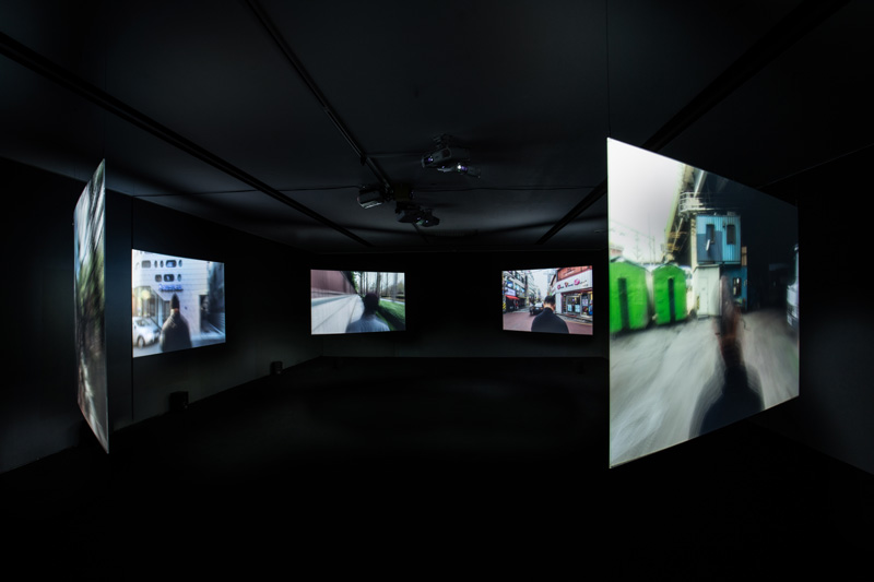 이원호, 〈적절할 때까지 I〉, 2019. 5채널 영상, 양면스크린, 아크릴, 나무, 60min.
