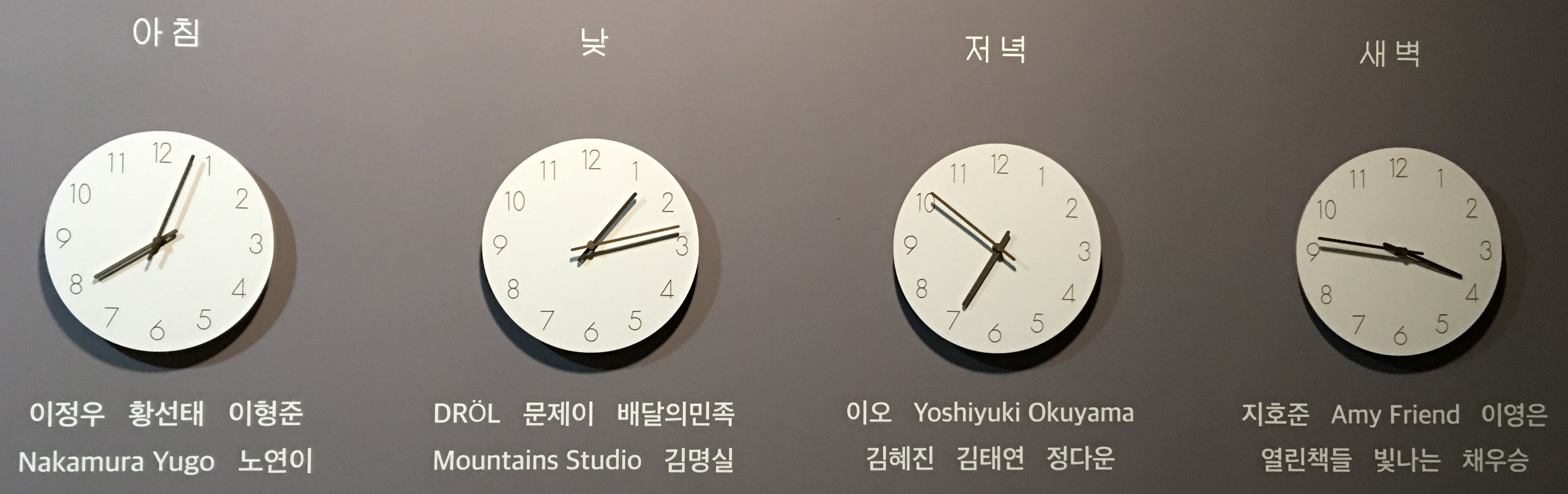 아침 이정우 황선태 이형준 Nakamura Yugo 노연이 낮 DROL 문제이 배달의 민족 Mountains Studio 김명실 저녁 이오 Yoshiyuki Okuyama 김혜진 김태연 정다운 새벽 지호준 Amy Friend 이영은 열린책들 빛나는 채우승