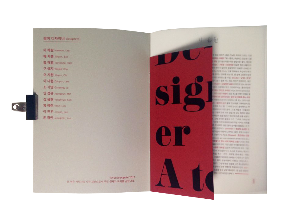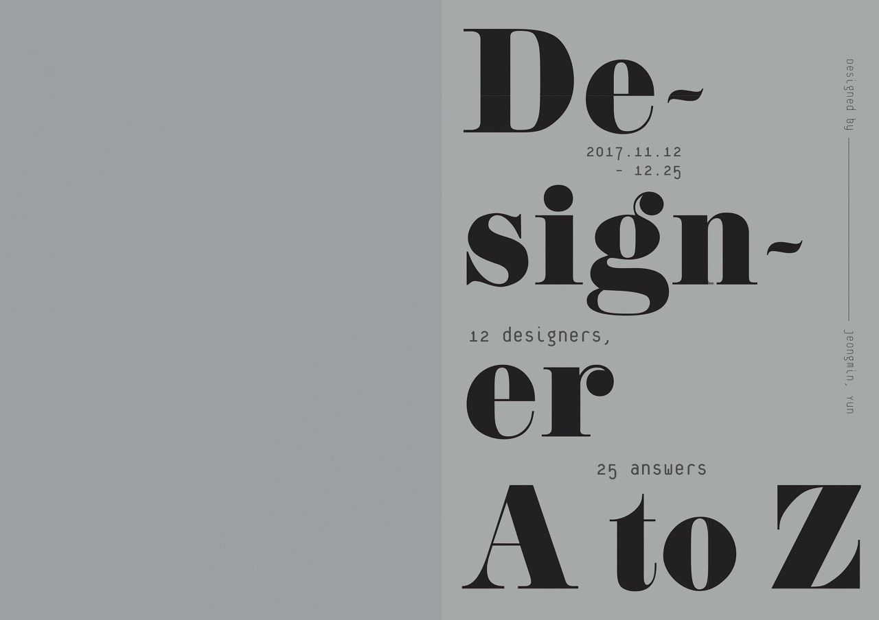 예전 나의 작업들 중에도 그런 것들이 많았다. 당시 만족하고 넘어갔던 것들 임에도, 다른 수많은 경험 후에 마주하니 새로운 생각이 들어갈 틈이 없는 꽉 찬 작업인 것이 있었다. 그래서 언젠간 말 그대로 비어있는 작업을 하고 싶었고,  <Designer A to Z>라는 이름의 작업으로 그 바람을 작게나마 행동으로 옮겨 보았다.  바쁜 개강과 과제들, 외부 작업과 산학, 광고 회사에서의 인턴까지. 많은 것들을 쌓아나가느라 스스로 정리하고 비울 시간이 필요했다. 그리고 그 비움의 시간은 새해가 오기 전에 끝내고 싶었다. 연말이라는 것이 늘 그러하듯 비움은 또 다른 채움을 위한 준비 운동이기 때문이다.