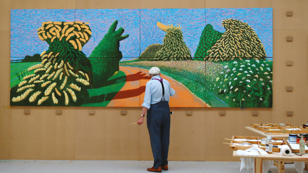 오랫동안 관찰하고 바라보는 행위를 통해 작품에 이야기와 생명력을 불어넣는 탁월한 능력을 지닌 호크니는 뛰어난 판화가이자, 사진가, 그리고 오페라 무대장치 제작자 및 연출가로서 꾸준히 활동하며 최근 아이패드를 사용한 작품을 선보이기도 하는 등 끊임없이 작업의 세계를 넓혔습니다. 또한 현대미술의 거장 피카소와 같이 다양한 각도로 대상을 해체하고, 동양화의 다시점 투시법 등의 표현 방식을 지속적으로 연구하여 활용하는 이 시대의 대표적 예술가입니다.