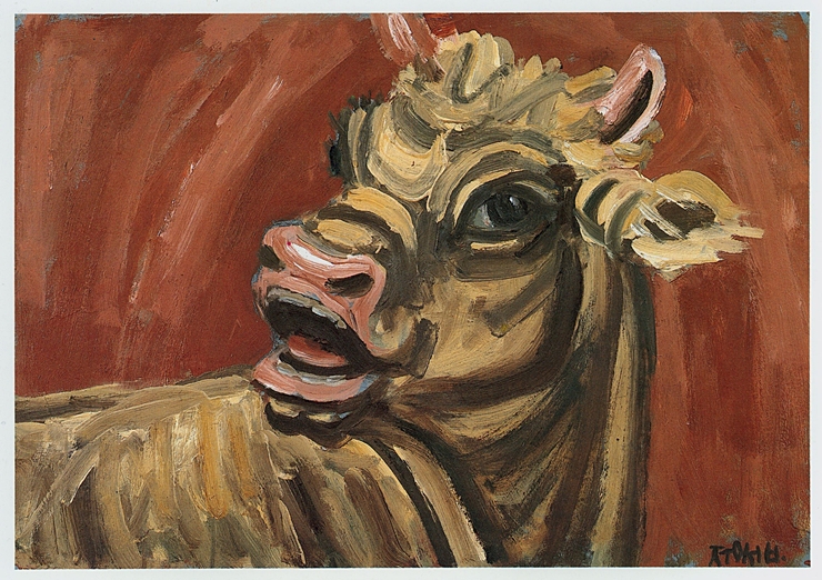 그의 아내에게 빚을 지게 한 업자와는 달리, 그의 그림을 가져가고도 대금을 치르지 않은 구매자들과는 달리, 이 순박한 화가는 사람에게 화풀이를 하고 죄값을 치르게 하지 못했다. 화와 울분을 타인에게 쏟는 대신 그 괴로움을 오롯이 스스로 감당했기에 그토록 몸이 아프고 마음이 아팠을 것이다. 우리네 농촌의 누렁소처럼. 우리의 소는 땀과 열기로 가득찬 스페인의 투우에서 보이는 소가 아니다. 서부의 황야와 들판을 달리는 미국의 물소도 아니다. 신성화된 인도의 소도 아니다. 소에게도 달리거나 싸우고 싶은 본능이 있는지도 모를 만큼, 인간의 무게를 나눠 지고 인간의 일을 함께, 혹은 대신 해 주는 동물. 야생의 본성도 내재된 신성도 모두 배제당한 채 길들여지고 길들여진 길을 가야 하는 동물. 한평생을 인내와 희생으로 점철된 삶을 살아가며 여름의 타오르는 볕과 겨울의 혹독한 추위를 맨몸으로 견뎌내야 하는 동물. 말 못 하는 동물임에도 불구하고 오랫동안 인간의 친구이자 말벗이자 반려자로 함께해 온 동물. 강아지처럼 도둑을 쫓거나 꼬리치며 주인을 반기지도 못하고, 고양이처럼 민첩하거나 아양을 떨지도 못하고, 무엇보다 집 안에 들일 수 있을 만큼 작거나 귀엽지도 않다. 도시화되는 삶에 적합치 않은 소는 반려동물보다는 축산용으로 우리에게서 멀어져 간다.
