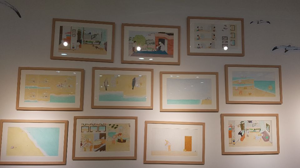 그림책의 원화뿐 아니라 스케치한 그림과 스토리를 구상한 시놉시스까지 전시하고 있다. 색연필의 부드러운 터치가 살아 있는 파스텔톤 그림과 잔잔한 이야기가 마음을 따뜻하게 한다. 홀로 지내는 할머니와 한적한 바닷가로 가서 함께 휴가를 보내고 싶다. 사랑하지만 멀리 떨어져 사는 가족과 외로운 이에 대한 위로를 떠올리게 한다.
