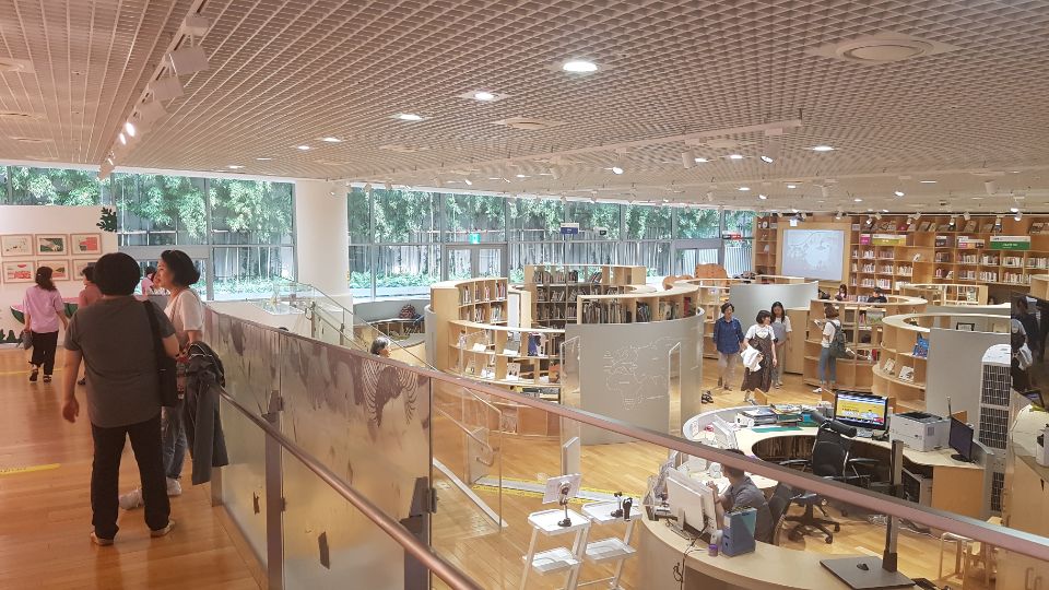 여운이 쉽게 가시지 않는다면 전시회가 열리는 어린이도서관에서 두근거리는 마음을 진정시키면 된다. 구불구불한 책장 사이사이에서 아이와 어른 모두 자유롭게 책을 읽고 있다. 창밖의 푸른 대나무가 시원하다.