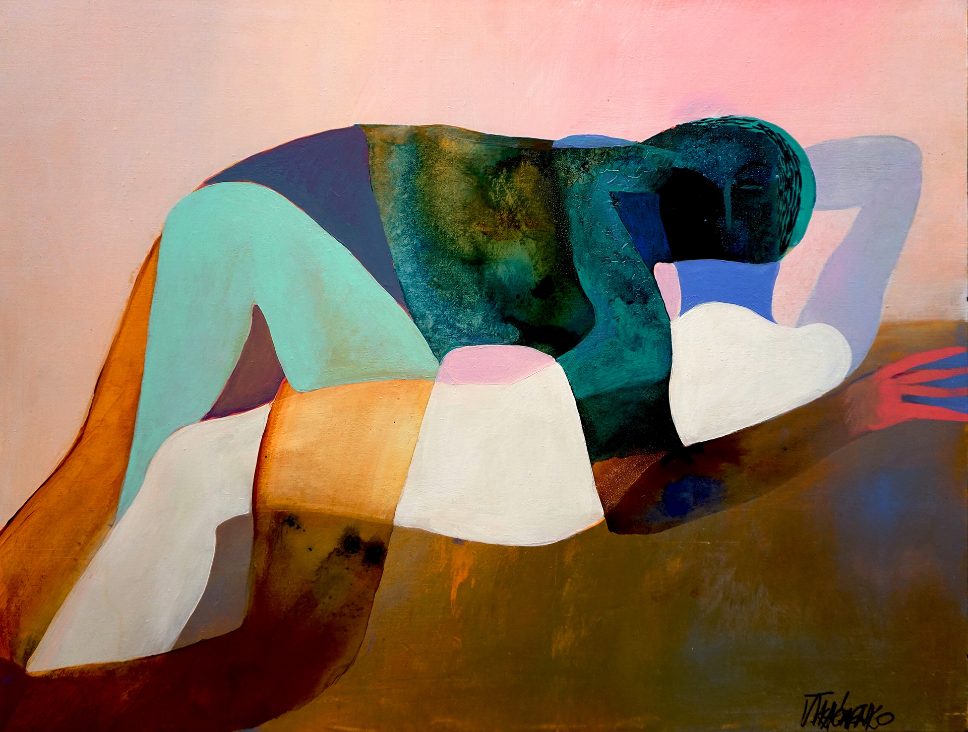 Victor Tkachenko, lives in Toronto, Canada. Victor received professional art training beginning at age ten and was one of few graduates to complete the extensive and rigorous program from the well-renowned Art School in Krivoy Rog, Ukraine. Working primarily with acrylic on board Victor displays a mastery of line and colour through purposeful brushwork and a palette dominated by rich earth tones thickly applied to the ground. The physicality of his work is enhanced with accents of ink and, intermittently, the addition of industrial materials such as varnish and plaster. Throughout the various stages of his work, Victor’s figurative forms are drafted with elongated lines, exaggerated features and geometric patterns that recall the hand of Amedeo Modigliani and Gustav Klimt accented with a subtle cubist aesthetic. While early paintings such as “Swing” are recognizable for their use of solid line and bold colour that refer to Byzantine mosaic work or stained glass, his oeuvre is grounded, broadly, in symbolism and expressionism. Dominating his art are planes of soft light which intersect and overlap, objects and figures emerge from a dreamlike atmosphere of harmonious colour while emotion and meaning are conveyed masterfully through bold pattern and vivid line. The embrace of two figures in “Kiss” captures, simultaneously, the intimacy of a single kiss between two lovers and the universal emotion – the tenderness and passion – of love. The feelings of melancholy, of mystery and wonder that persist in Victor’s work recall the style of Odilon Redon and Gustave Moreau and yet are uniquely situated in his hands. Victor’s work can be found at galleries and private collections all over the world.