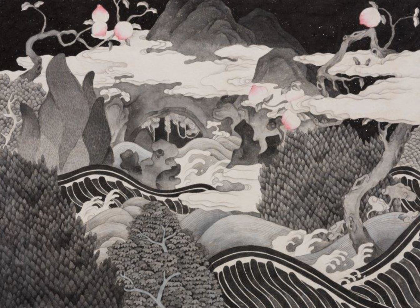 <무릉도원3, 장지에 채색, 46 x 34 cm , 2019>