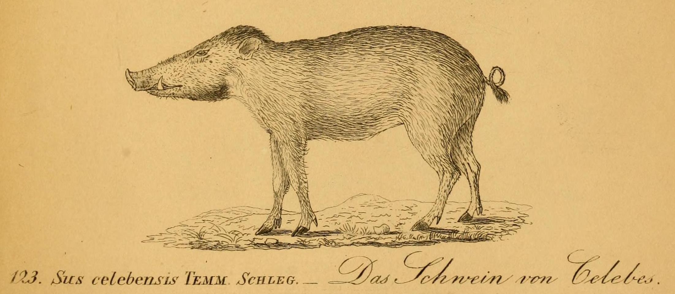 술라웨시워티피그 또는 셀레베스위티피그(Sus celebensis)의 이미지, 현재.