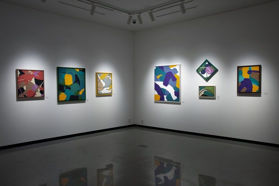 한 예로 제 첫 개인전에서는 동양재료와 서양재료를 혼합한 추상 작업을 했었어요. 저는 사실 재료에 대한 고민보다는 작품을 통해 어떤 말을 어떻게 할 것인지에 대한 고민을 더 많이 하기에 재료적인 제한을 따로 두지는 않고 있습니다. 당시 화면을 구성하는 구도와 색, 그리고 재질감(마티에르) 이렇게 3가지를 중점으로 시각적인 즐거움을 이야기하는 것에 가장 중점을 두었고 이에 따라 큰 붓 자국과 같은 재질감과 두께감을 활용하는 것을 생각했죠. 결국 제가 표현하고자 하는 작품의 무게와 내구성을 고려할 때 서양화 재료를 혼합해서 사용하는 것이 좋겠다고 판단했습니다.