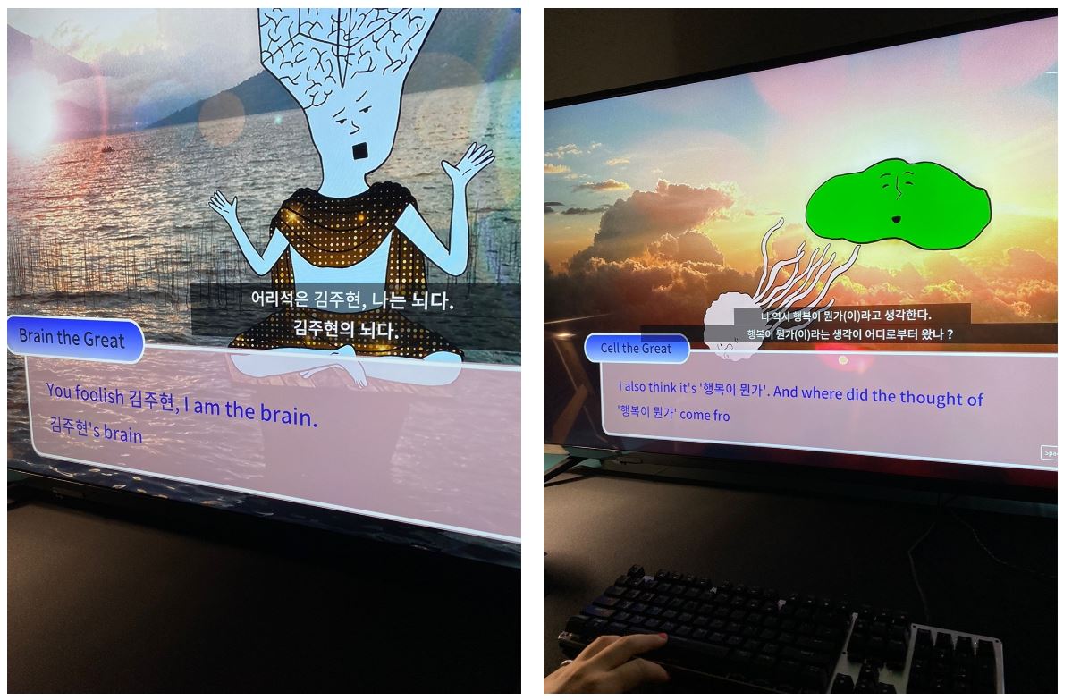 또한, 플레이어가 된 관객은 직접 화면 속의 인물과 대화하며 가상세계 속 공간의 소실점은 더욱 깊어진다.