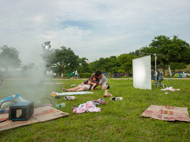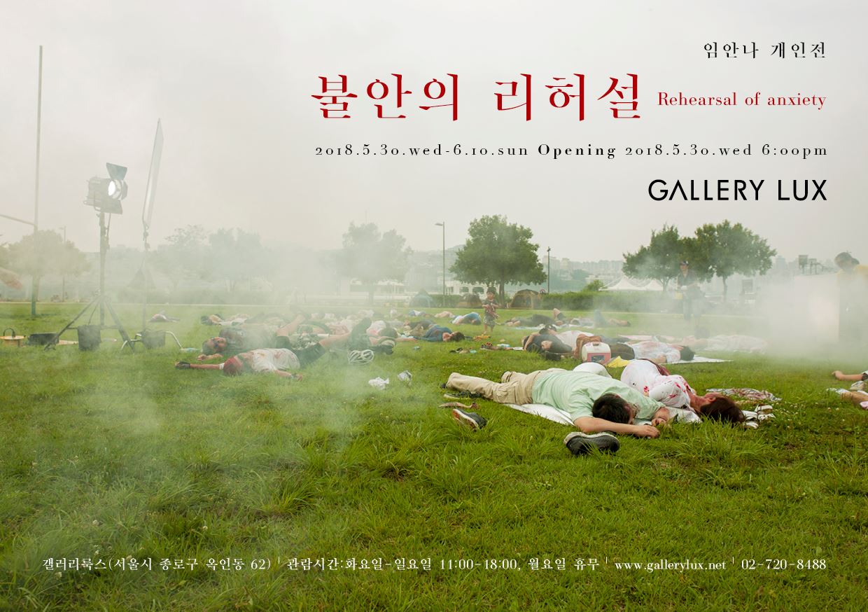 현대 사회의 죽음 불안 중 테러공포가 개인에게 유발하는 불안증과 불감증 사이의 심리적 괴리를 미디어가 참사를 재현하는 연극적(histrionic) 화법을 차용하여 시각화하였습니다. 이번 전시는 ‘만약 지금 나에게......’ 라는 상상으로, 미디어에서 각인된 타인의 고통이 담긴 이미지에 의한 참여자들의 트라우마 반응과 자신의 불안을 투사하는 퍼포먼스를 사진과 영상으로 구성됩니다. -갤러리룩스-