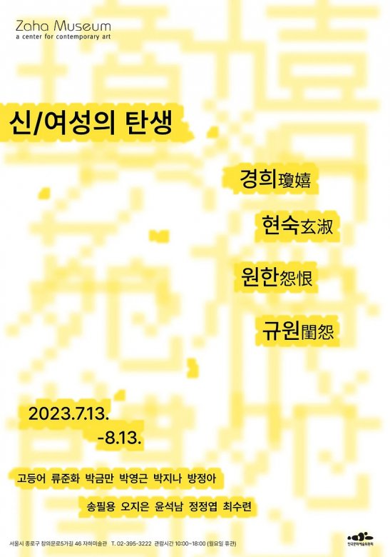자하미술관에서 7월 13일부터 8월 13일까지 《신/여성의 탄생 – 경희 현숙 원한 규원》 전시를 개최한다. 이번 전시는 2022년도부터 자하미술관에서 진행한 나혜석 작가에 대한 사전연구를 기반으로 근대의 신여성부터 동시대의 주체적이고 새로운 여성성을 선보이는 작품들을 선보이고자 기획되었다. 근대의 신여성이란 근대 일제 강점기 신식 교육을 받고 봉건적인 사회 인습을 과감히 타파하는 자질과 능력을 기반으로 여성해방운동과 사회적 계급타파운동에 적극적으로 참여하고자 하는 여성을 칭하는 용어였다. 나혜석 작가(1896~1948)는 국내 최초 여성 서양화가이자 문학가로 특히 그가 남긴 네 편의 소설 『경희』, 『현숙』, 『원한』, 『규원』에는 이러한 당대 신여성의 특징이 잘 드러나 있다. 이 인물들이 나타내는 것은 한 마디로 말하면 ‘여자도 사람이외다’라는 유명한 구절처럼 하나의 인간으로써 자기 자신이 되어 보고, 듣고, 말하고자 하는 주체적 삶에 대한 갈망이다. 이번 전시의 명제이기도 한 ‘신/여성’이란 이러한 과거 신여성에 대한 인식의 동시대적 변용 및 확장의 뜻을 내포한다. 이들은 ‘여성’이라는 범주 내에서 사회적 억압에 대한 저항의 계보를 이어가면서도, 동시에 사회가 구축한 ‘여성’이라는 정체성과 무관하게 자신의 삶 자체에 충실하면서 주체적 여성성을 표방한다. 이때 사건의 중심은 사회적으로 높은 지위와 명성을 지닌 여성 인물에서 우리 일상에서 쉽게 만날 수 있는 평범한 여성들로 점차 이행하는 것을 알 수 있다. / 자하미술관