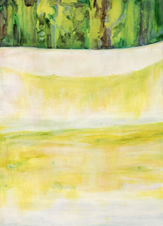 유화 물감을 묽게 사용하여 색과 빛의 층을 쌓아가는 우지윤의 회화는 가시적인 대상과 조응하지 않는다. 붓질을 따라 화면 위에 오묘한 색을 발하는 물감의 레이어는 특정 존재를 명명하기 보다는, 존재 이면에서 일렁이는 기억의 물성과 맞닿아 있다. 우지윤의 작업은 어릴 적 테네시 주에서 마주했던 거대한 대지와의 교감처럼 삶을 피부로 감각하게 하는 순간을 조우하며, 그리고 이 순간을 기억하며 시작된다. 이는 곧 그림으로 붙잡고 싶은 찰나를 길게 늘어뜨려 영원에 머무르고자 하는 시도로 확장된다. 우리는 붓이 지나간 희미한 자리마다 눈에 보이지 않는 풍경의 조각들을 불러와 이를 증언하고자 하는 작가의 마음을 떠올린다. 우지윤에게는 살아 숨쉬는 오늘 경험할 수 있는 모든 총체적 감각에 대한 경애가 회화의 이유가 된다.
