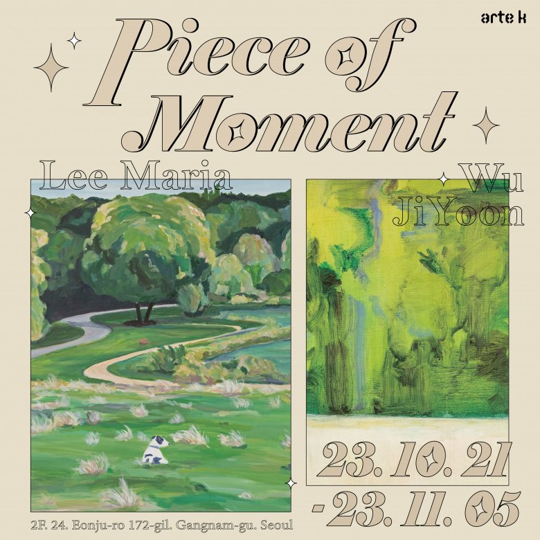 《Piece of moment》는 우지윤, 이마리아 작가가 포착한 희미하고도 선명한 찰나, 그 순간의 조각들을 각자의 방법론으로 수집하고 기록한 작업을 보여준다. 여기서 두 작가가 선보이는 작품은 곧 무형의 기억과 감정에서 유형의 감각으로 구체화되어 감상자에게 전이되는 경험을 선사한다. 이는 흘려보낸 모든 유의미한 순간들이 우리 어딘가에 축적되어 있었음을 인지하고, 우리가 잊고 있던 시간과 존재를 감각하도록 내면의 층위를 더듬어 들여다보게 한다. 전시 공간에 머무르는 모든 감상자에게, 흩어진 기억과 이미지의 조각들을 모아 당신의 서사를 엮어 나가길 기대한다.