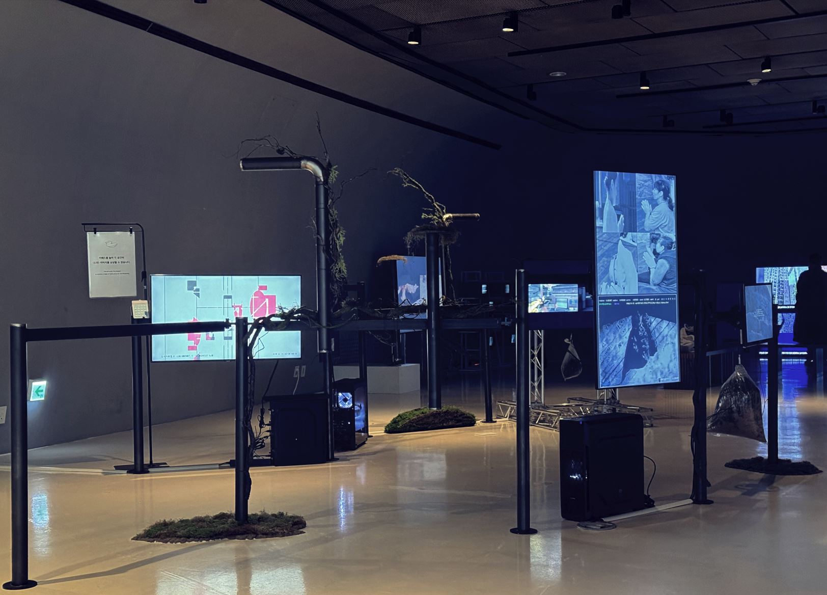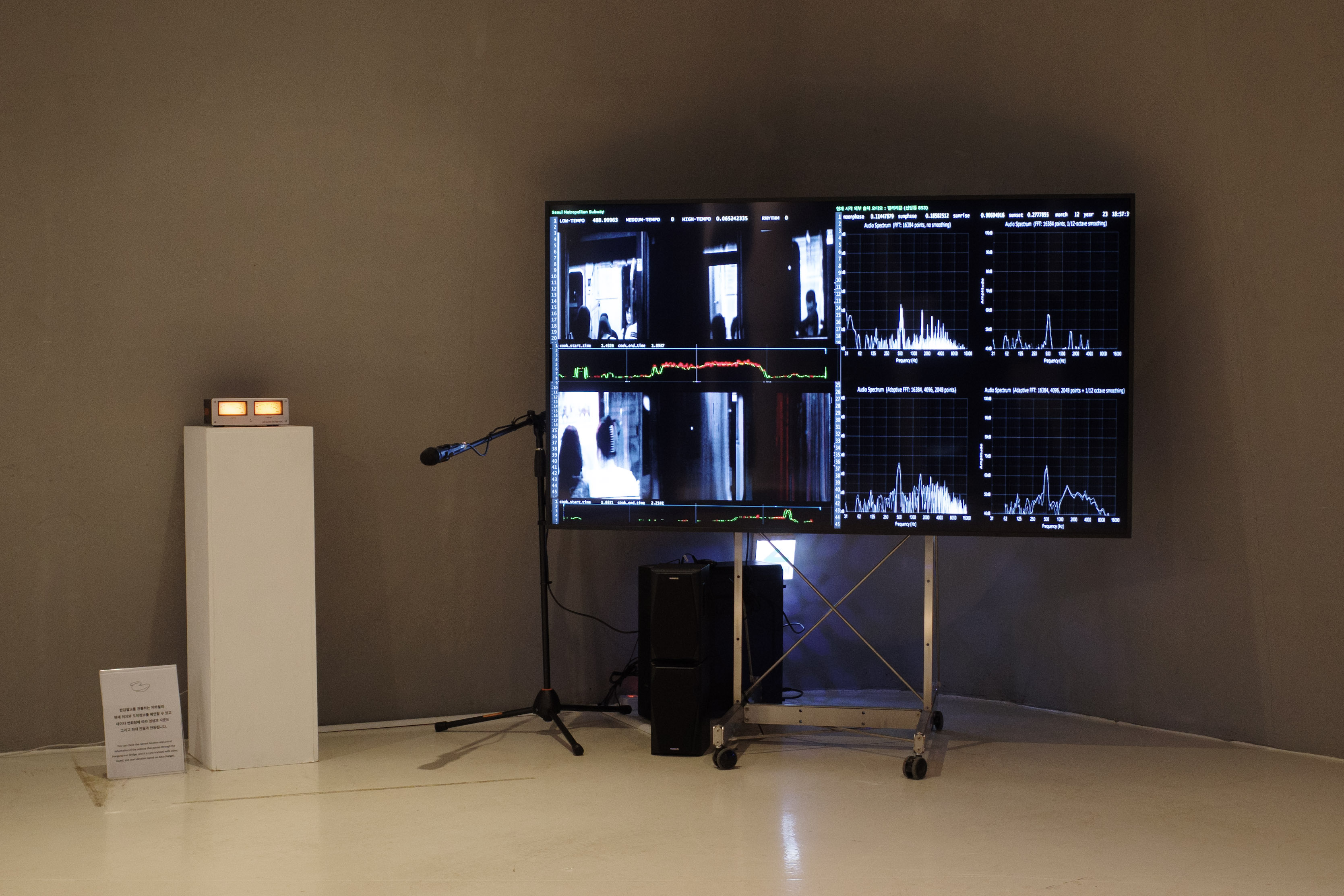 첫 번째 공간 전시는 서울시 데이터를 실시간으로 받아와 구동되는 오디오-비디오 작업입니다.