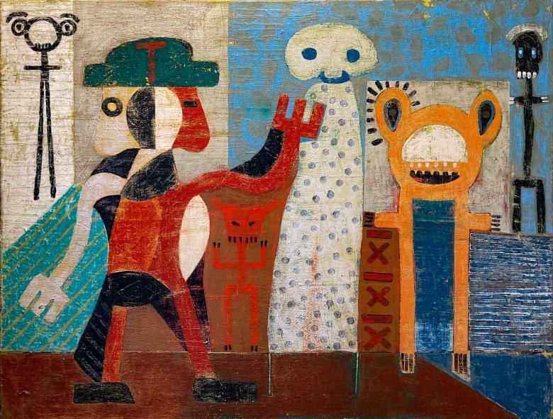 In this sense, MASCH's two-dimensional formal language and semiotics are rooted in the tradition of simplification and reduction as in cubism for example. This is another reason why it would be a mistake to confuse his clarity and precision of expression with naivety. MASCH is free from such role models in his particular style, not least because of a noticeable, greater lightness and a confident, but also undogmatic expression. This sovereignty is noticeably developed and is the result of a thorough finding. In their clear formal language, MASCH's figures combine an enigmatic simplicity similar to that of archaic geoglyphs with humor and a desire to tell stories straight from everyday life. Strange gestures and symbols are naturally coupled with human closeness and down-to-earthness. This makes MASCH's works as accessible as they are multi-layered and, especially in this combination, extremely fascinating.