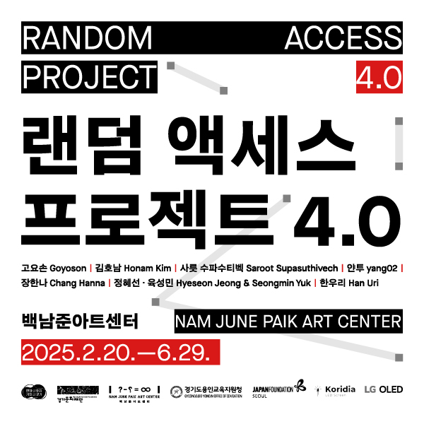 «랜덤 액세스 프로젝트 4.0»은 2025년의 문을 여는 첫 전시로, 백남준아트센터가 동시대의 실험적인 젊은 작가들을 소개해 온 프로젝트의 네 번째 버전이다. 올해는 고요손, 김호남, 사룻 수파수티벡, 얀투, 장한나, 정혜선·육성민, 한우리로 구성된 국내외 7팀(8명)이 참여하여 정형화된 인식과 틀에 얽매이지 않는 예술로 백남준의 실험정신을 보여주는 작품 14점을 선보인다.