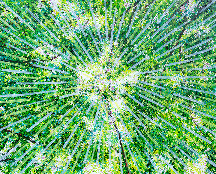 홍일화 작가는 사람의 발길이 닿지 않은 거대한 미지의 숲을 그린다. 외부 세계에서 막 도착한 사람들에게 숲에 들어서길 권하고 숲에 머무는 느낌을 준다. 그 속에서 나무의 정령들이 에워싼 듯 고요와 두려움이 교차하기도 한다. 척박하지만 아름답고, 강한 생명력으로 꿈틀대는 찬란한 생(生)의 모습을 붓질로 드러낸다. "생태학적 야생 공간인 숲은 공포의 대상인 한편 인간이 범접할 수 없기에 신비를 간직하고 있는 미지이다."라고 작가는 밝힌 바 있다. 홍일화 작가가 이렇듯 숲에 천착하는 것은 숲(자연)에 대한 존중과 경외심, 그리고 사라져가는 것을 지키려는 그만의 지속적인 관심이며 예술적 탐구다. 하나하나의 풀과 덤불, 나무와 빛, 이들이 이루는 총체적 자연으로서의 숲, 그곳에서 인간이 모르는 자연만이 주고받는 이야기를 끊임없이 창작해 나가는 원동력 또한 여기에 있다. “인간들은 자신이 모든 것을 다 안다고 생각하지만 정작 제일 중요한 걸 잊어버렸어. 자신들이 어디서 누구와 함께 살아가고 있는지 말이야. 자기들이 세상의 중심이라고 착각하고 있어. 세상 모든 것들이 자신들을 위해 존재한다고 생각하는 거지. 자신들도 대자연의 일부일 뿐이라는 걸 잊은 채로.” (출처 : 『빛이 숨을 쉴 때』 37쪽) 홍일화의 ‘숲’은 그 아름다움을 화폭에 재현하고, 그것을 지키기 위한 노력과 인내를 독려한다. 그리고 사람도 자연의 일부로 함께 살아간다는 상생의 진리를 우리가 잊지 않고 대면하기를 원한다. 갤러리마리는 새봄이 시작되는 3월, 《가야의 숲》을 찾는 관람객들이 숲이 머금은 에너지를 함께 느끼며, 홍일화 작가의 글과 그림을 통해 그 가치를 공유하는 자리가 되기를 바란다.