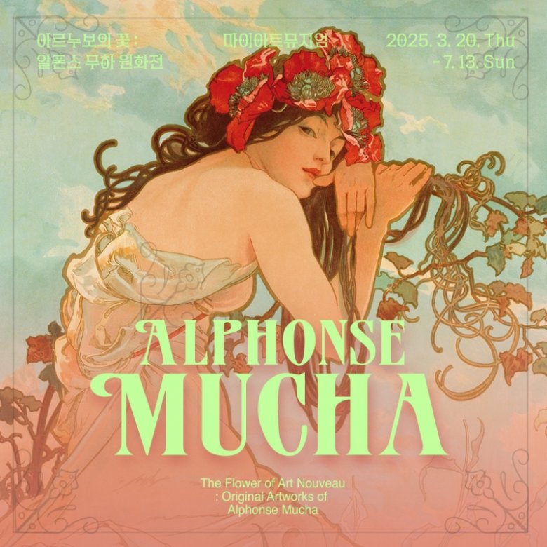 마이아트뮤지엄은 아르누보 미술의 거장, 알폰스 무하 탄생 165주년을 기념하여 ≪아르누보의 꽃: 알폰스 무하 원화전≫을 2025년 3월 20일부터 2025년 7월 13일까지 개최하여, 무하의 독창적이고 상징적인 예술 세계를 직접 감상할 수 있는 기회를 제공한다. 아르누보는 특정 시스템이나 원칙을 따르지 않는 독특한 예술 운동이었다. 19세기 말 유럽에서 정치적, 사회적, 기술적 변화가 급격히 이루어지면서, 사람들은 낡은 질서를 벗어나 새로운 현실을 수용할 필요성을 느꼈다. 이러한 시대적 요구 속에서 탄생한 아르누보는 회화, 조각, 그래픽 아트, 건축, 장식 예술 등 시각 예술 전반에 걸쳐 큰 영향을 미쳤다. 무하의 독창적인 스타일, 이른바 "르 스타일 무하 (Le Style Mucha)"는 슬라브 민족적 모티프와 결합하며 아르누보 운동의 대표적인 아이콘으로 자리 잡았다. 이번 전시는 무하가 프랑스에서 얻은 성공과 명성을 넘어, 그의 예술과 철학이 체코 민족 정체성으로 확장되는 과정을 조명한다. 그의 오리지널 포스터, 판화, 드로잉, 유화, 도서 간행물, 디자인 장식 오브제 등 300여 점의 작품을 통해 예술적 여정을 살펴보자. / 마이아트뮤지엄