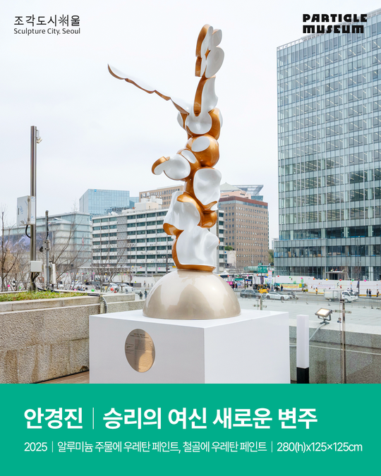⓵ 안경진, <승리의 여신 새로운 변주>, 2025, 알루미늄 주물에 우레탄 페인트, 철골에 우레탄 페인트, 280(h)x125x125cm