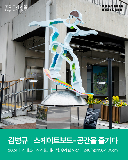 ⓷ 김병규, <스케이트보드-공간을 즐기다>, 2024, 스테인리스 스틸, 대리석, 우레탄 도장, 240(h)x150x100cm