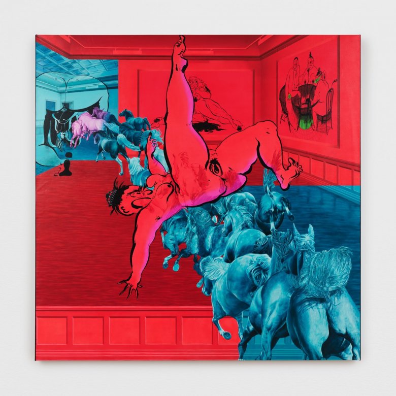 ‘Fatebe’ is Muslimova’s emblem of bodily liberation and surreal narrative. Known for her unflinching perspective and technical skill, the artist places this character in contorted poses and unexpected situations. The detailed oil paintings and gestural drawings each act as a standalone performance, merging absurd comedy with psychological depth. The exhibition at Kunsthall Stavanger combines new, large-scale paintings and works on paper with artworks from private collections to expand Fatebe’s universe. Luxurious and domestic settings meet surreal landscapes to create a feeling of psychological ambiguity. Gathered together, these works present Muslimova’s ongoing exploration of identity, self-consciousness, and the expressive potential of the body.