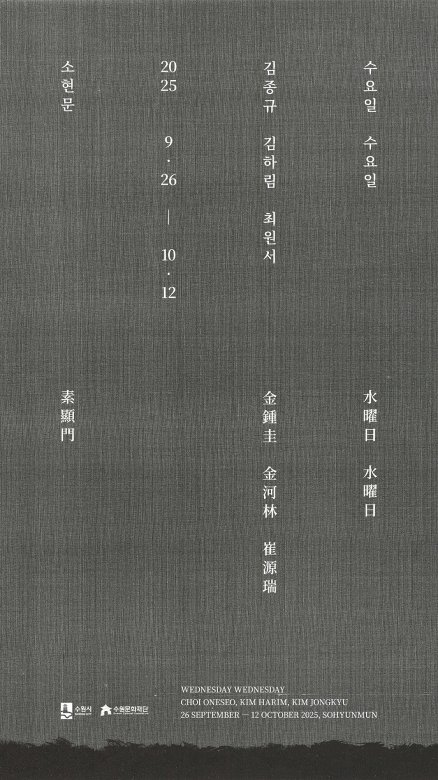 ‘쓔'는 소현문 연례 큐레토리얼 전시기획으로, 아시아 문화 정체성 및 유산 기반으로 창작하는 주체를 조명한다. 어제와 내일을 잇는 시간선에서 지나가는 날을 배웅하고 다가오는 날을 마중하는 부름에 따라 이곳의 수요일은 수요일과 다시 인사한다. 중의적 문맥에서 반복하는 이름은 또 다른 연결을 상상하는 단서이다. ‘수요일 수요일’은 단어 하나를 강조하고, 앞말과 뒷말이 서로를 수식하거나 서술한다. 소현문이 일주일 중 수요일마다 운영을 쉬기에, 전시 제목과 그 약자인 쓔는 전시가 열리고 닫히는 시간을 동시에 호명한다.