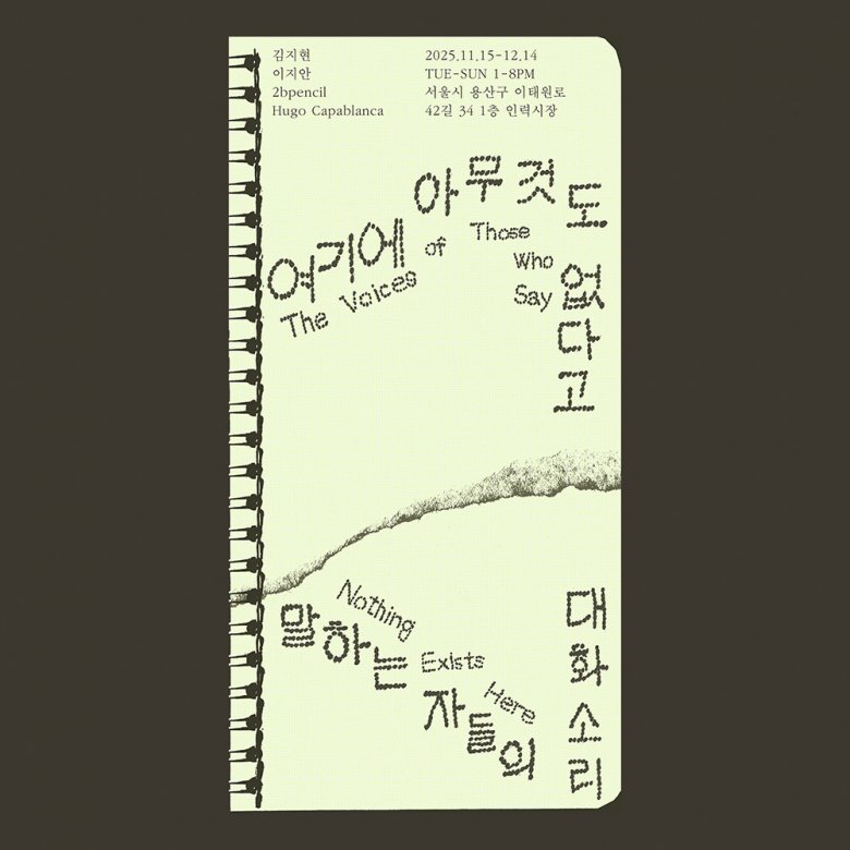 아주 작은 전시장에는 주변적인 이야기들이 모여든다. 이들은 가까이 붙어 서로 긴밀하게 이야기를 웅성이는 듯하다. 분명한 목적을 가지거나 중심을 향해있지 않은 목소리가 오히려 드러내는 것은 무엇일까? 어쩌면 이들은 그저 탈정치화된 하나의 미시적 사건으로 번번이 여겨지고 마는 것은 아닐까? 보이지 않는 사건과 흘러가는 매일, 그리고 이들의 작은 남김들은 무엇을 불러 일으키고 있는 걸까? 선택되지 못해 호명되지 않는, 그저 부차적인 것들이 ‘여기 있다’는 건 무얼 의미할까?