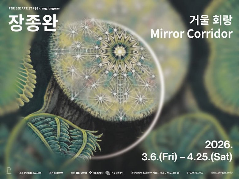 장종완은 이상향으로 보이는 자연의 풍경과 생태계를 꾸준히 그려왔다. 《거울 회랑》은 이러한 작업의 연장선에서 또 다른 방향을 보여준다. 이번 작품은 데칼코마니 기법처럼 접히고 펼쳐지며 하나의 지형을 형성한다. 이는 실제의 시공간이라기보다 반복과 복제 속에서 균형을 유지하는 가상의 세계다. 명확한 서사구조를 지니지 않지만, 판타지 소설이나 영화의 세계관을 닮은 작업은 현실의 요소를 기반으로 재창조된다. 즉 장종완의 회화는 현실과 가상이 데칼코마니처럼 서로에게서 기인한 하나의 시공간으로 볼 수 있다. 작가가 상상하는 세계는 멀리 우리와 분리된 곳이 아니라 밀착된 공간에 가깝다. 이는 축적된 선택이 다르게 전개되었을 가능성, 혹은 새로운 사회의 출발점에 대한 상상을 통해 이해될 수 있다. 상상은 작가의 삶과 미래에 대한 바람이 담겨 있는 가상의 시공간이기에 가능한 것으로서, 그의 그림이 무엇을 보여주고자 하는지에 대한 질문으로 이어진다.