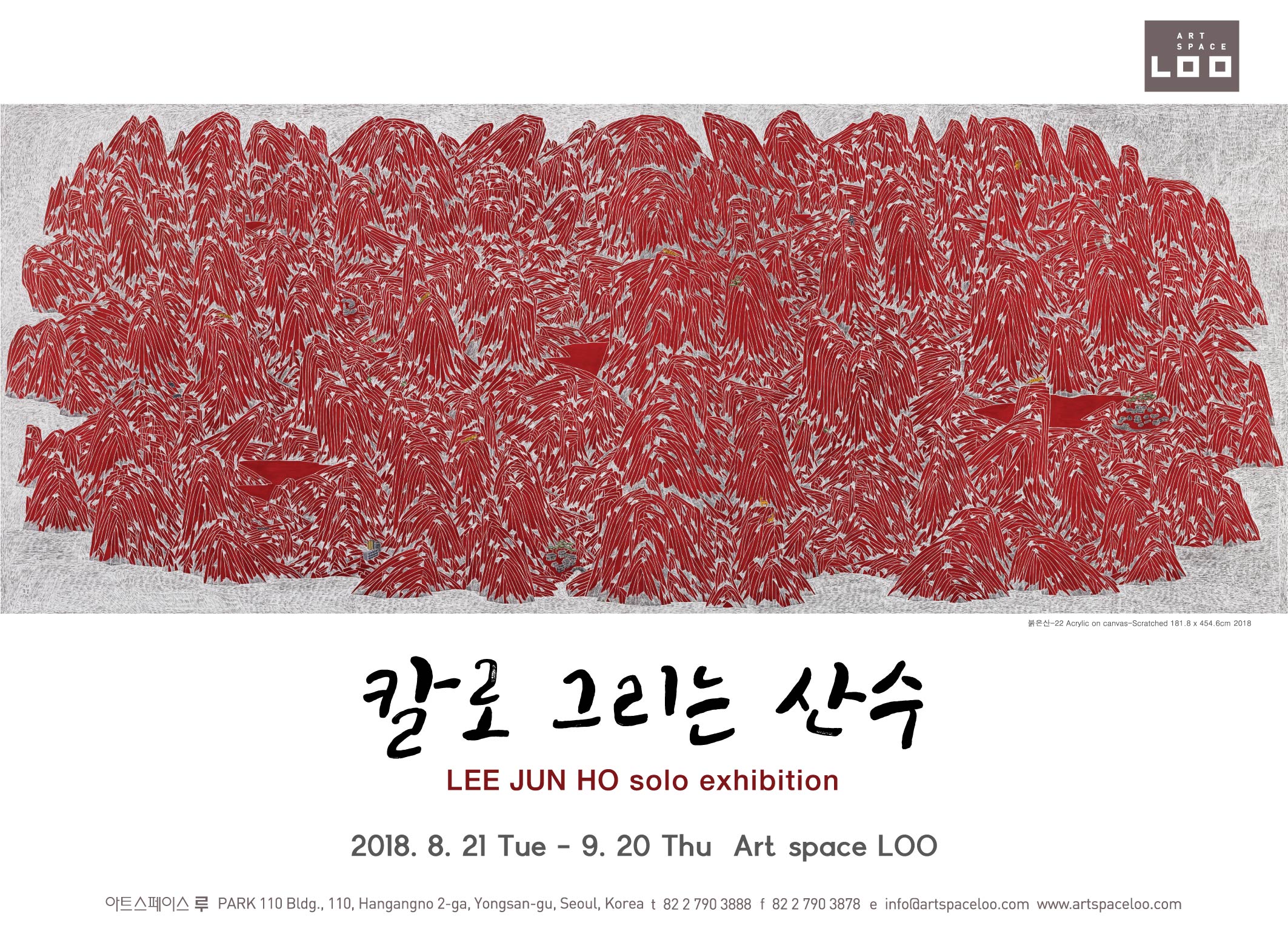 단색화에 새겨진 붉은산, 산수경, 신-산수는 칼끝으로 호흡하듯 긁어나간 자리에 드러난 산수를 재해석하고 주관적 관념과 현실을 투영하는 시선으로 흔들리지 않을 세계를 구축하고자 하는 나의 의지이다.