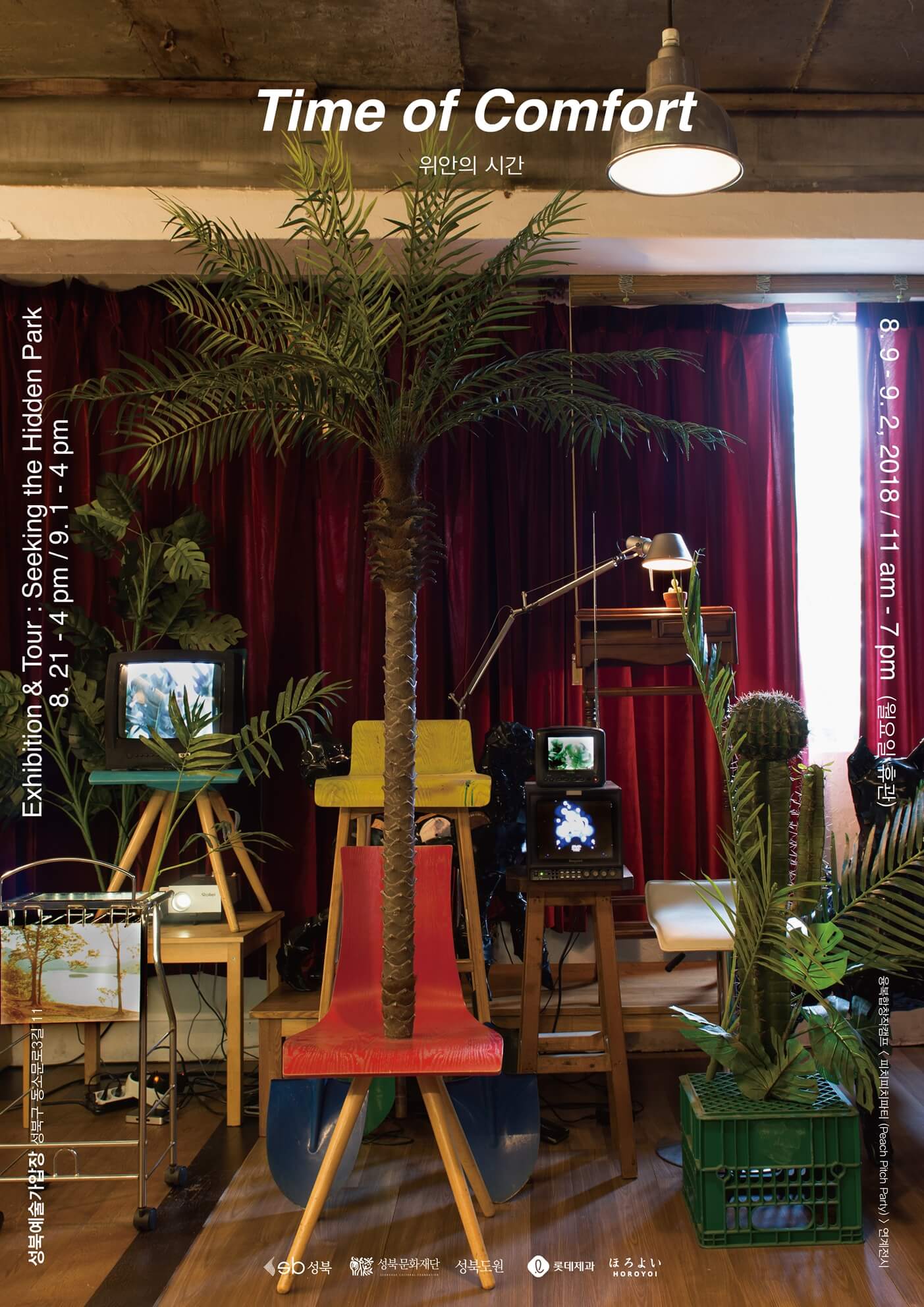 Um Along collects things. The artist collects things from different corners of the city, from islands and forests, and from the sea. The things that have been picked up and collected from different places become artworks after the artist ‘reads’ and ‘rewrites’ the places. Um’s work upcycles objects that have been abandoned or lost their use, turning them into things with another context. In this sense, his artworks generate a landscape with collected things, which is not only linked to his personal emotions but also the places where the things are collected. Time of Comfort is the artist’s fourth solo exhibition. In the exhibition, the artist invites the viewers to a ‘certain landscape.’ The exhibition is held as part of the program for Peach Pitch Party, a CAMP for Convergence & Creative, organized by Seongbuk Dowon.