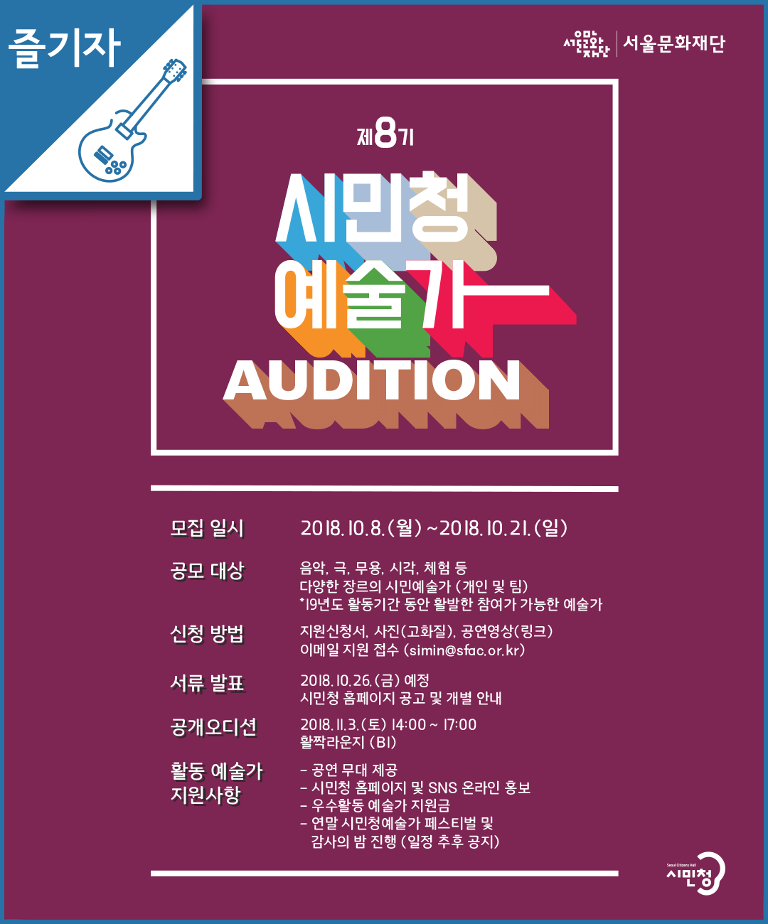 첨부시 파일명은 '시민청예술가_단체이름' 형식으로 발송