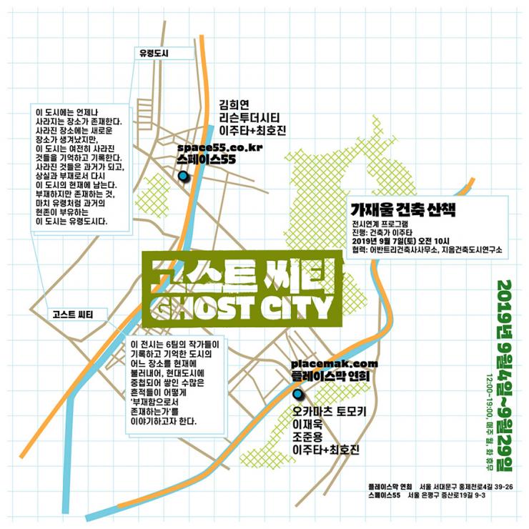 <고스트 씨티>는 쉼 없이 해체되고 재생되는 현대도시를 대상으로, 시간의 흐름 속에서 도시의 장소에 개인과 사회가 쌓아온 중첩된 기억을 이야기하려고 한다. 어느 장소가 지닌 과거의 모습 또는 과거의 사건이 남긴 비가시적 상흔과, 매일같이 목격하는 장소의 물리적 변화-대체-상실에 관한 이야기이다. 현대도시의 장소를 끊임없이 변화시키는 것은 도시 계획을 수립하는 사회 정책일 수도, 자본을 근간으로 하는 권력일 수도, 기후 환경의 변화일 수도 있다. 이런 여러 가지 외부적 요인들이 장소를 변화시켜 왔고, 이동성과 흐름이라는 공간의 패러다임에 의해 도시의 장소에는 수많은 이야기들이 들어왔다 나가면서 흔적을 남겼다.