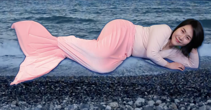 <해변의 여인>은 안데르센의 <인어공주> 원작을 재해석한 비디오 퍼포먼스이다. 정새해는 바다세계를 등지고 육지세계를 거쳐 저 너머의 영원한 삶에 이르렀던 인어공주에 스스로를 투영하여 영원에 이르는 모습을 상상한다. 영상에 등장하는 인어공주는 어딘지 모르게 우스꽝스럽지만 그녀의 태도는 사뭇 진지하고 결연하다. 예술가로서 꿈꾸는 영원성은 인어공주로 나타나는 반면 현실에서의 결핍은 조악한 색과 공간의 연출로 드러난다. 물과 기름처럼 섞이지 못하는 예술가로서의 이상과 현실은 하늘-땅-바다 어디에도 속하지 못해 부유하고 소외된 작가 자신의 모습과 같다.
