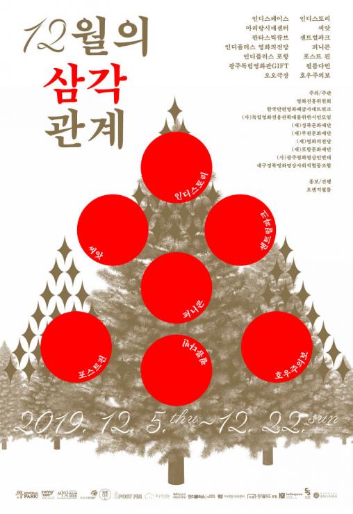 2019년 12월 5일부터 12월 22일까지 개최되는 기획전 '12월의 삼각관계' - (주)인디스토리, 센트럴파크, 씨앗, 포스트 핀, 퍼니콘, 필름다빈, 호우주의보 총 7개의 배급사별 단편영화들로 구성된 섹션을 인디스페이스, 아리랑시네센터, 판타스틱큐브, 인디플러스 영화의전당, 인디플러스 포항, 광주독립영화관GIFT에서 만나 보실 수 있습니다.