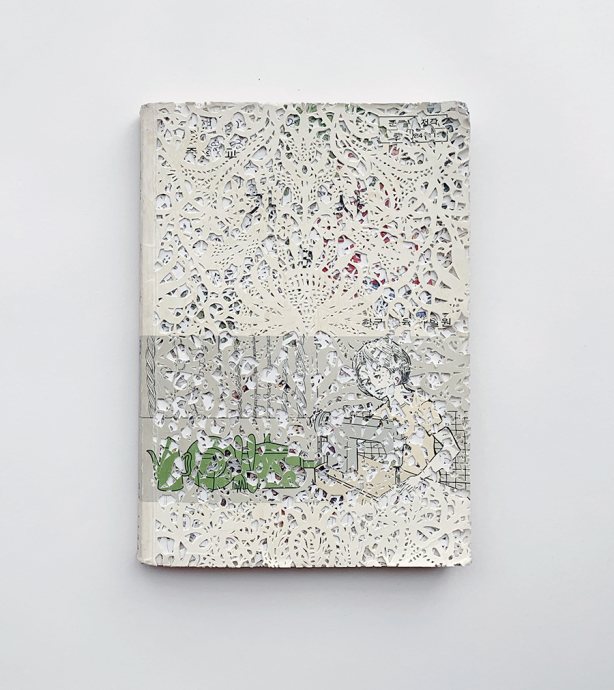 작가의 외부자 시선은 “교과서” 시리즈에서도 볼 수 있다. 작가가 중,고등학교 시절 공부한 가정, 가사는 여학생들을 대상으로 가부장적이고 사회에서 억압적인 여성의 역할을 강조, 강화하고, 교련은 북한을 주적으로 규정하고 전시중 여성의 역할을 남성과 가정을 보살피고 간호하는데 한정시켰다. “가사" (1984년 출판, 중학교 교과서)와 모든 교과서에 수록되었던 “국민교육 헌장"에서 작가는 레이스 패턴을 이용하여 독재 정부가 만들어낸 주입식 내러티브를 해체한다. 레이스 패턴은 또한 획일화된 사회에서 개개인의 성향은 무시되고 사회구성원의 일부, 즉 패턴의 일부로만 성장하게 유도하는 시대적상황을 반영하기도 한다. “가정” (1980년대 출판, 중학교 교과서)은 돋보기와 태양을 이용하여 천천히 태워 구멍을 내는 방식으로 만들어졌다. 느리지만지속적인 방식이 어린 학생들에게 억압적인 지식을 주입하는 과정과 유사하다. “교련" (1990년 출판, 고등학교 교과서)에는 좀 더 작가의 개인적인 이야기가 숨겨져 있다. 교련 교과서에 숨겨진 mp3 플레이어에서는 작가의 유년시절에 겪은 독재정권의 공포에 관한 에피소드가 반복 재생된다.